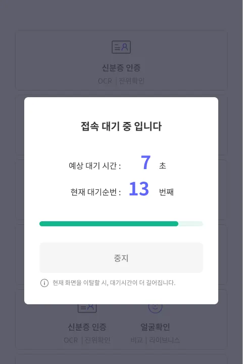 특히, OCR 처리 속도가 빠르더라도 정부기관을 통해 신분증 진위확인을 하는 단계에서 일정 수 이상을 처리할 수 없기 때문에 많은 지연이 예상되었습니다.