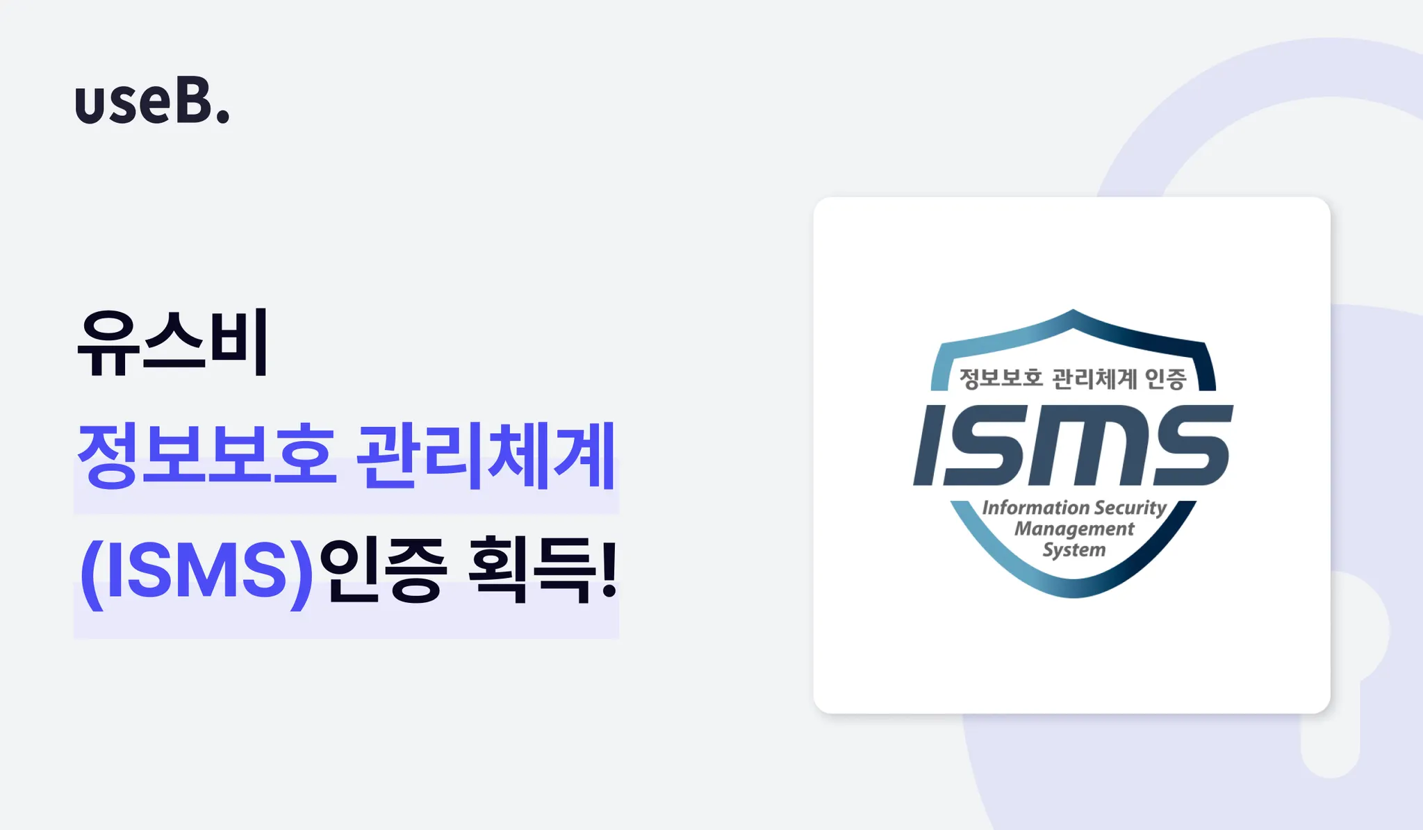 이번 ISMS 인증을 통해 유스비는 주요 정보 자산의 안전뿐만 아니라 보안의 우수성까지 인정받을 수 있었습니다.