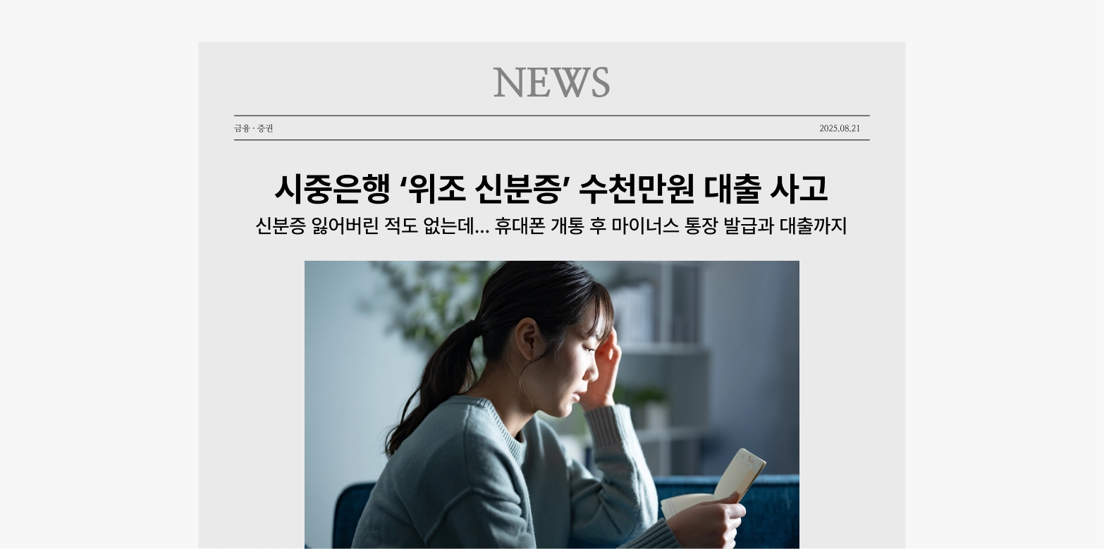 최근 시중은행에서 위조 신분증 대출 사기 사건이 발생했습니다. 정교하게 위조된 신분증이 심사 절차를 통과했고, 결국 부정 대출까지 승인된 것인데요.