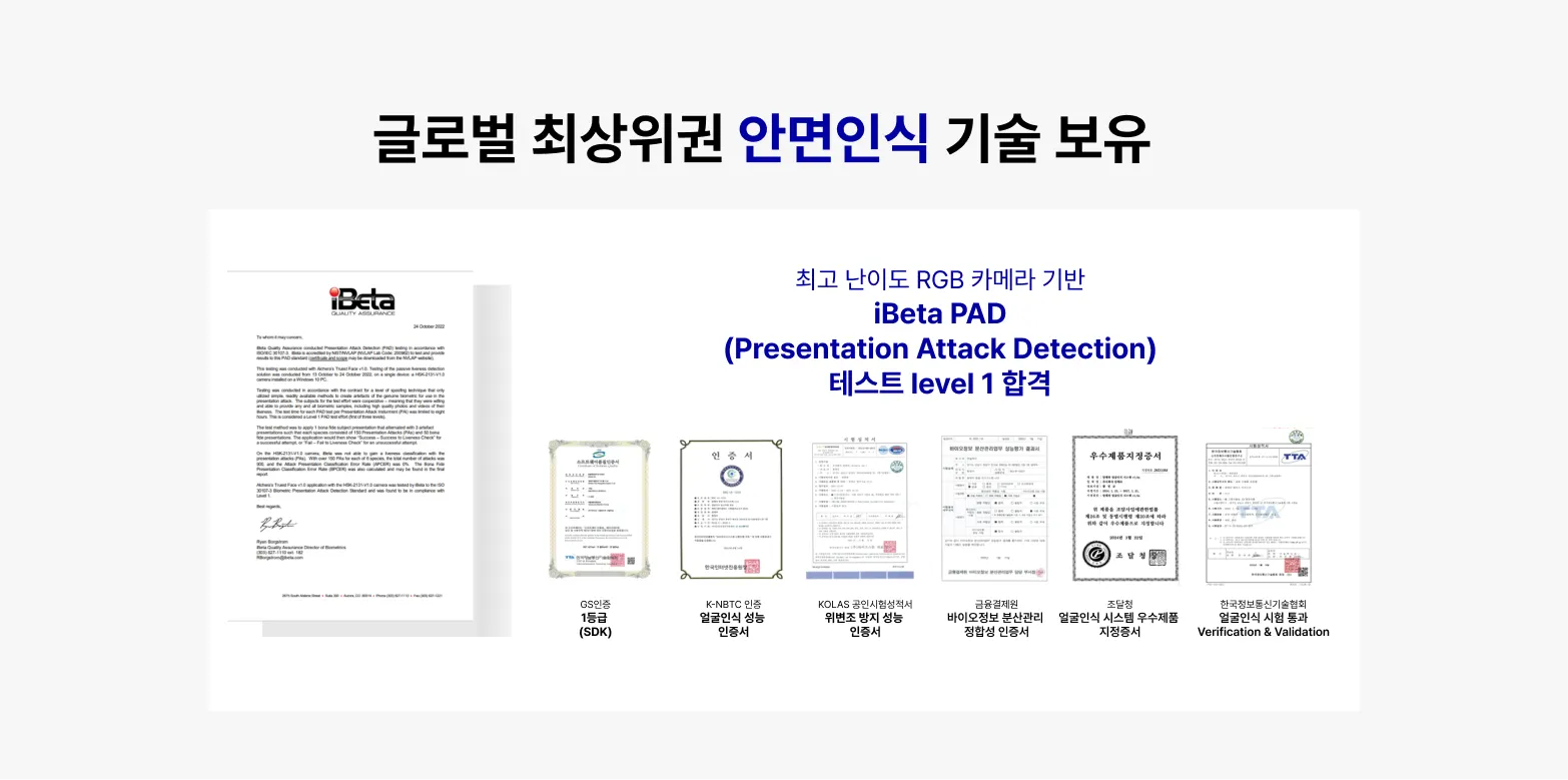 iBeta PAD 인증 획득 (국내 유일 RGB 기반)