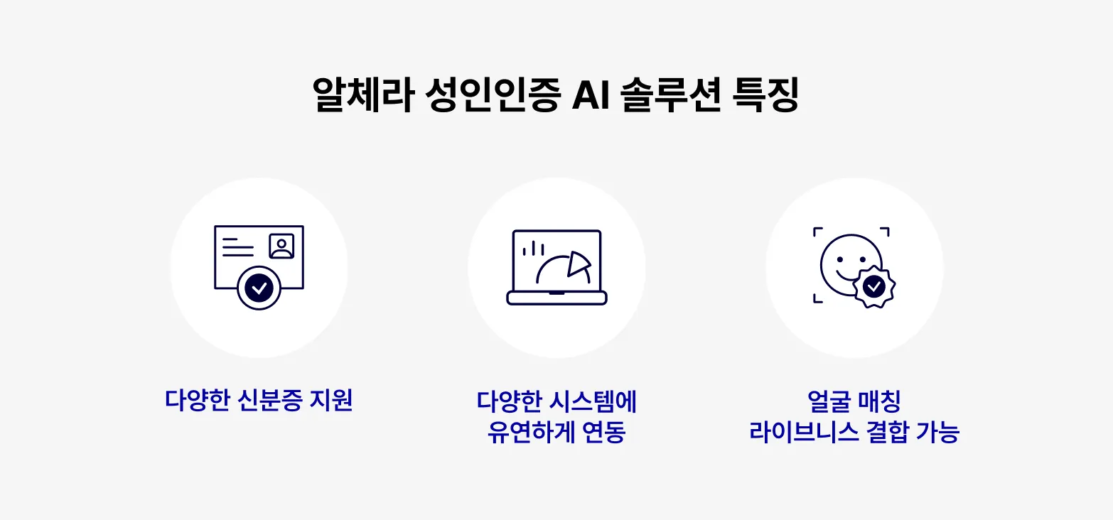 신분증 기반의 OCR 및 진위 확인, 얼굴 기반의 안면인증과 라이브니스 검증까지 결합한 통합 인증 솔루션은 단순한 ‘성인 여부’ 확인을 넘어, 실사용자 본인 여부까지 검증할 수 있는 강력한 본인 인증 수단입니다.