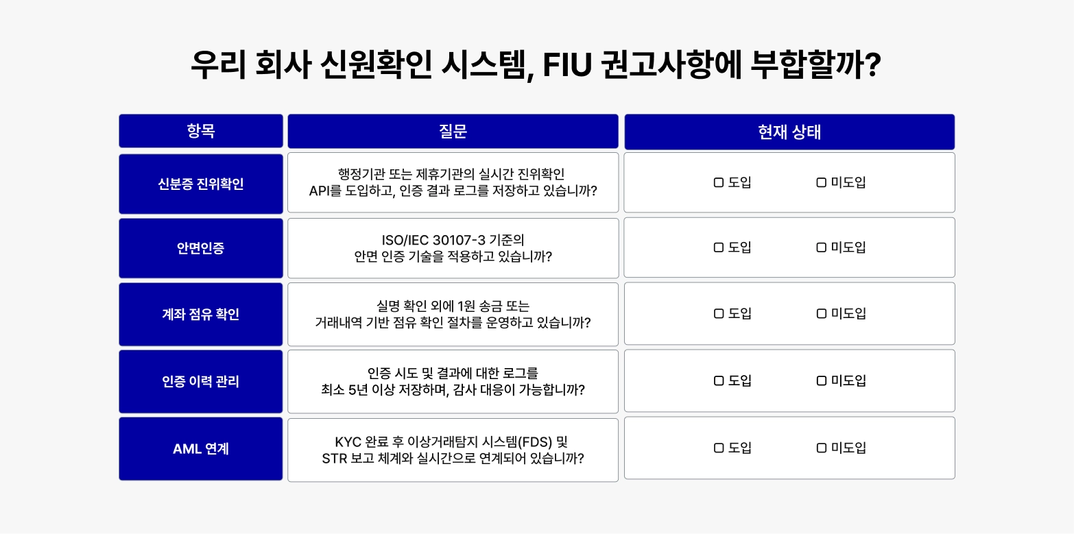 자가 점검 체크: 우리 시스템은 FIU 권고에 부합할까?
