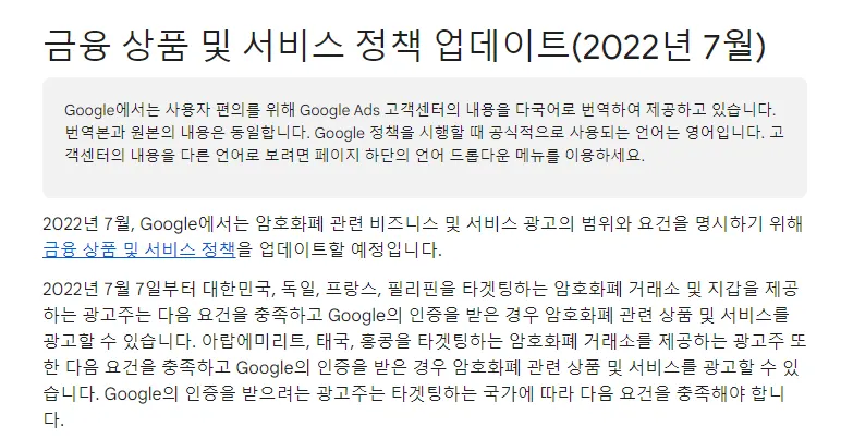 출처 ) 구글 https://support.google.com/adspolicy/answer/12055790?hl=ko