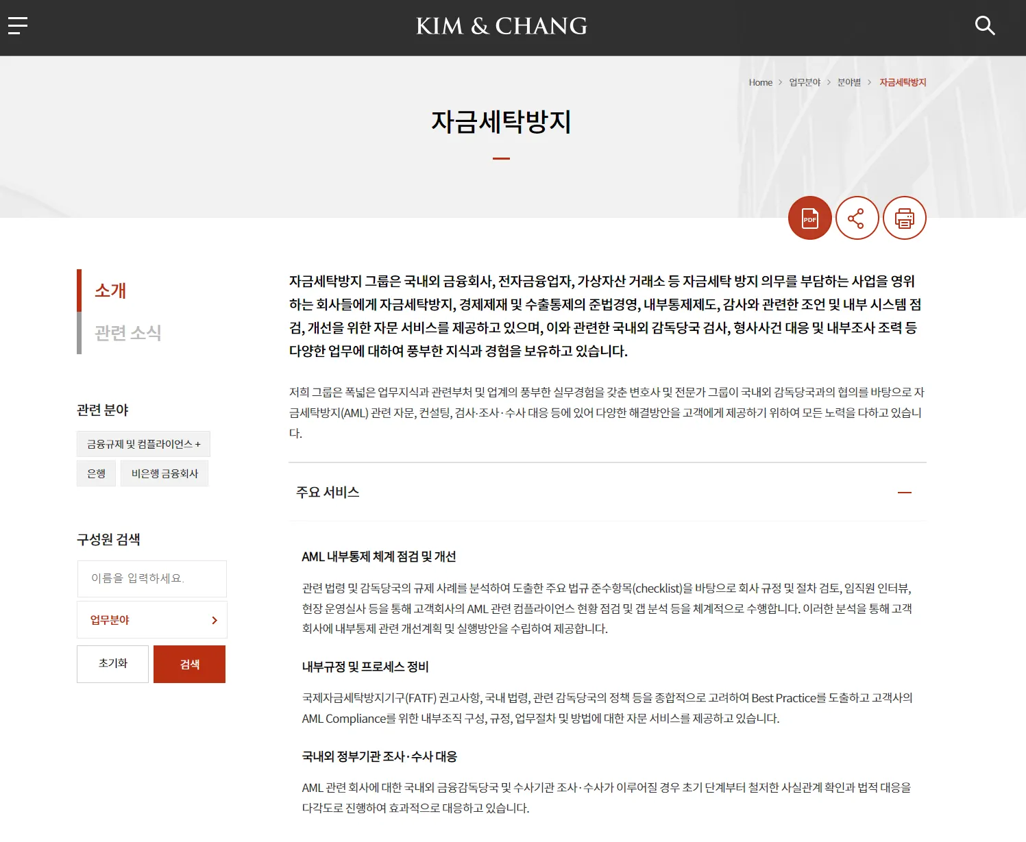 출처 : 김앤장법률사무소 홈페이지(https://www.kimchang.com/ko/expertise/view/aml-compliance)
