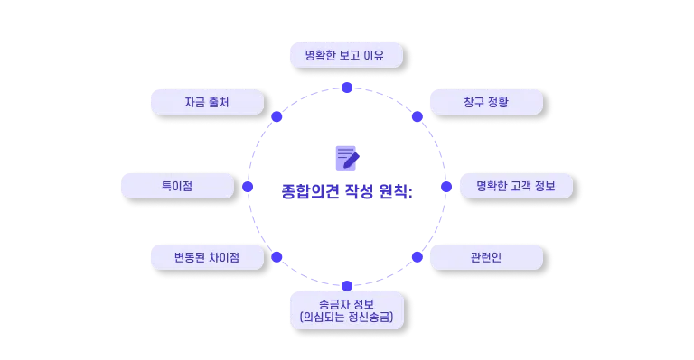 위의 3가지 원칙에 따라, 금융사 직원이 최대한 객관적이고 구체적인 보고를 할 수 있도록 권장하고 있습니다.